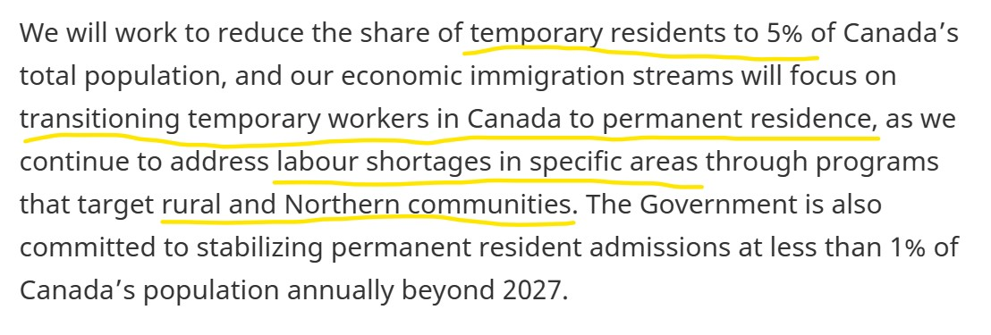 카테고리 기반 추첨은 지금 헬스케어, 소셜서비스, 교육, 트레이드 중심으로 운영되고 있고, STEM은... 이번엔 언급도 없었어요. (정말요, 안타깝지만...) 그리고 프랑코폰 이민도 강화하겠다고 하는데, 불어만 조금 해도 뽑아주겠다는 이 정책은 실질적으로는 쓸모없다는 평가가 많죠. 왜? 대부분의 프랑코폰 이민자들은 결국 영주권 후 그 동네에 정착을 하기보다는 퀘벡으로 이동하기 때문에, 전국 분산 목적이 실패로 끝나기 쉽거든요.
