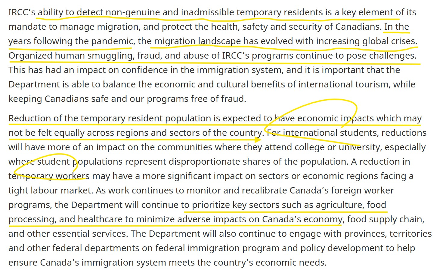 그 서막은 레나 디압 장관이 열었습니다. 지금까지도 많이 들으셨겠지만, 핵심은 임시 외국인 체류자 수를 줄이겠다는 것. 생각보다 훨씬 많은 수의 외국인이 캐나다에 들어왔고, 덕분에 하우징·소셜서비스·일자리 문제가 발생했다는 거죠. 그래서 올해 처음으로 이민 레벨 플랜에 "임시 체류자 타겟"이 포함됐습니다. 2026년 말까지, 캐나다 전체 인구의 5%까지만 외국인 학생들과 노동자를 받겠다는 거예요. 한마디로, 입국 자체를 숫자로 조절하겠다는 뜻입니다