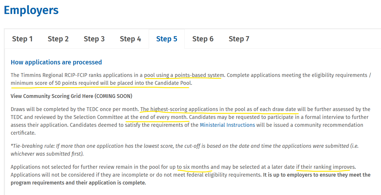 RCIP가 드디어 움직이기 시작했다. 인구 4만 명 남짓의 작은 도시, 온타리오 주에 위치한다곤 하지만 거의 퀘벡에 붙어있는 도시인 티민스(Timmins)가 첫 주자로 나섰다. 퀘벡에 붙어있는 도시답게 불어 공용 사용 지자체라 rcip말고 프랑코폰 파일럿도 동시 진행인 곳이다. 공식 링크: https://timminsedc.com/immigration/