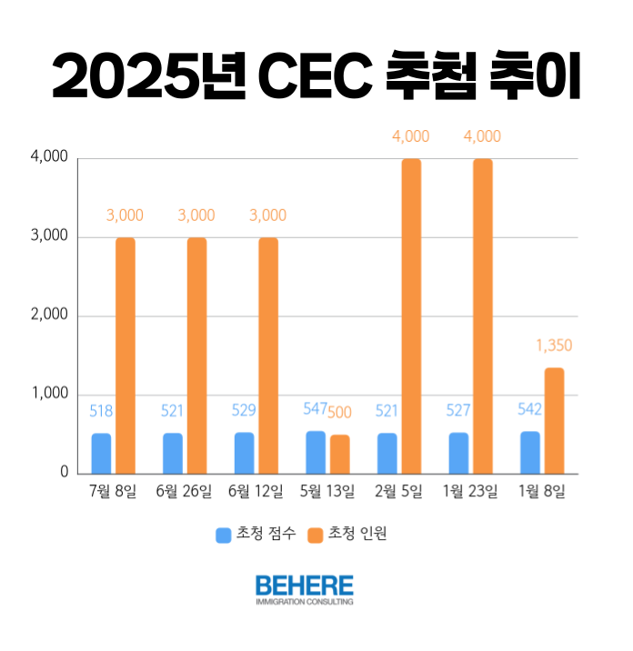비가 하루 종일 내리던 밴쿠버에 해가 다시 떴던 7월 8일, 캐나다 이민 흐름에도 햇살 같은 소식이 하나 있었다. 바로 또 한 번의 CEC 대규모 추첨, 그리고 3,000명이라는 숫자. 이게 중요한 이유는 이번이 벌써 3연속 3,000명 추첨이라는 점이다. (중간 중간 PNP 추첨이 있었지만 우리들에게는 프랑코폰 추첨만큼 의미없는 추첨이니 삭제하자) 그리고 그 커트라인은 오늘 드디어 518점.